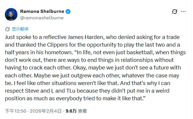 固然,交游好意思满后,对于“哈登此次到底是不是主动提议交游恳求”成了一个争议话题,ESPN资深记者罗蒙娜·谢尔本(Romona Shelburne)在酬酢媒体上发表了一段哈登的表述,称哈登示意并莫得主动向快船提议“交游恳求”,“我不肯成为攻击快船将来发展的绊脚石,但愿他们能简直获取重建机会并积蓄选秀本钱。而在克利夫兰,我看到了东部争冠的机会,尽管我渴慕留在洛杉矶再战,毕竟从未夺冠过,但手脚篮球通顺员,我觉得这里(克利夫兰)更有机会。”