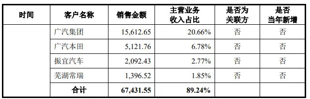 针对这一情况,公司在招股书中证明,客户集结度高是汽车零部件行业的遍合格局。公司强调,其主要主机厂客户均为行业著名企业,互助关系始终判辨。举例,自公司缔造之初便与奇瑞汽车张开互助,与广汽集团旗下多家主机厂的互助历史也已卓越十年。