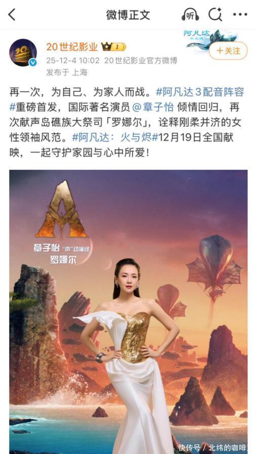 就拿本年来说,章子怡的新电影《酱园弄》上映,先锋步履亦然一场接一场。 这个月初她刚官宣新身份,成为《阿凡达3》汉文版配音演员,月底就又带来一则重磅佳音。