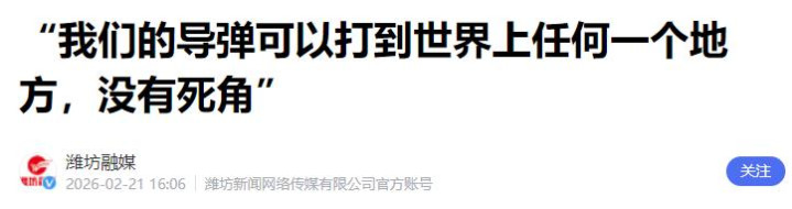 潍坊融媒:“咱们的导弹不错打到世界上任何一个场地,莫得死角”