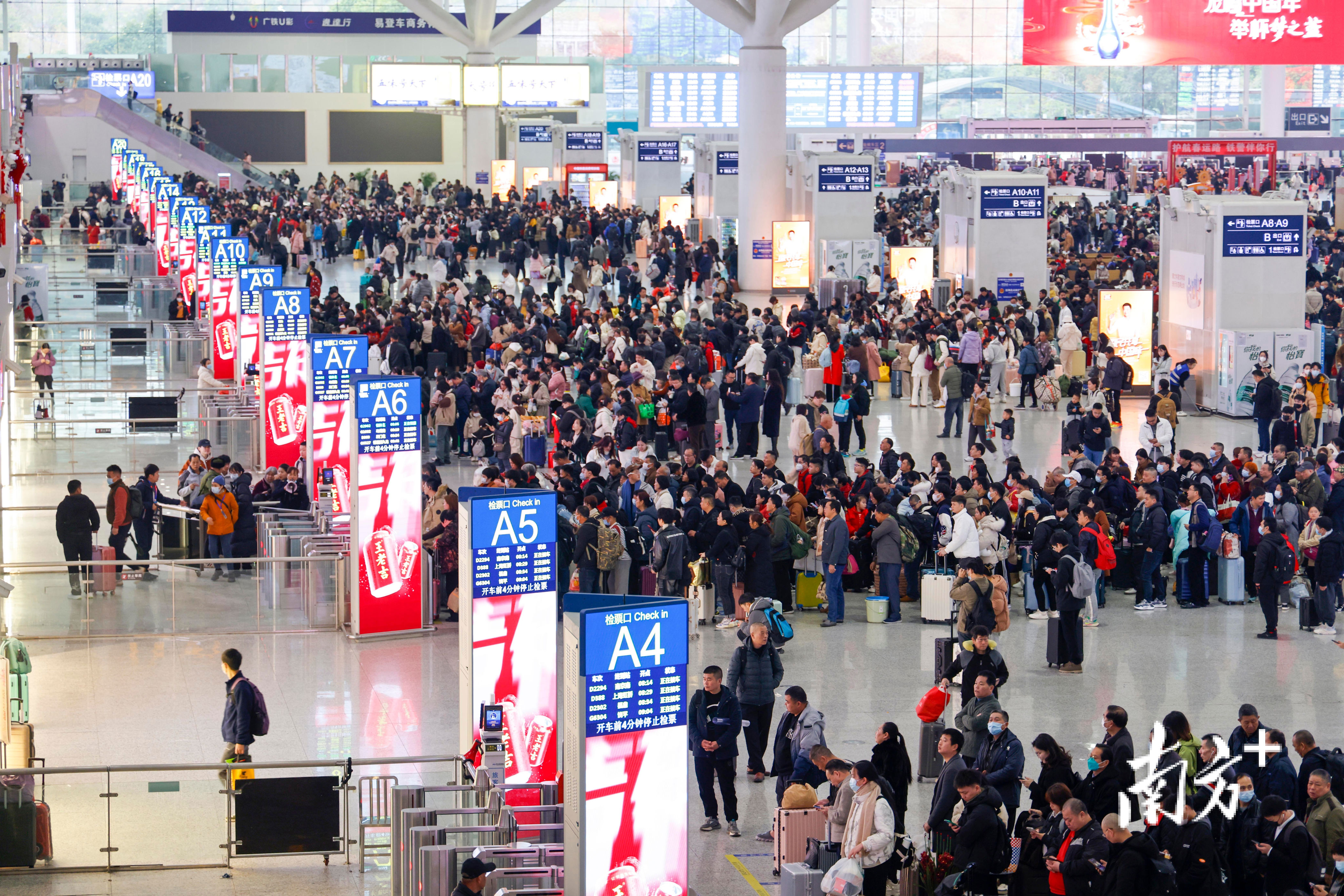 2026年2月2日,广州南站候车大厅内候车的搭客。南边日报记者 石磊 摄
